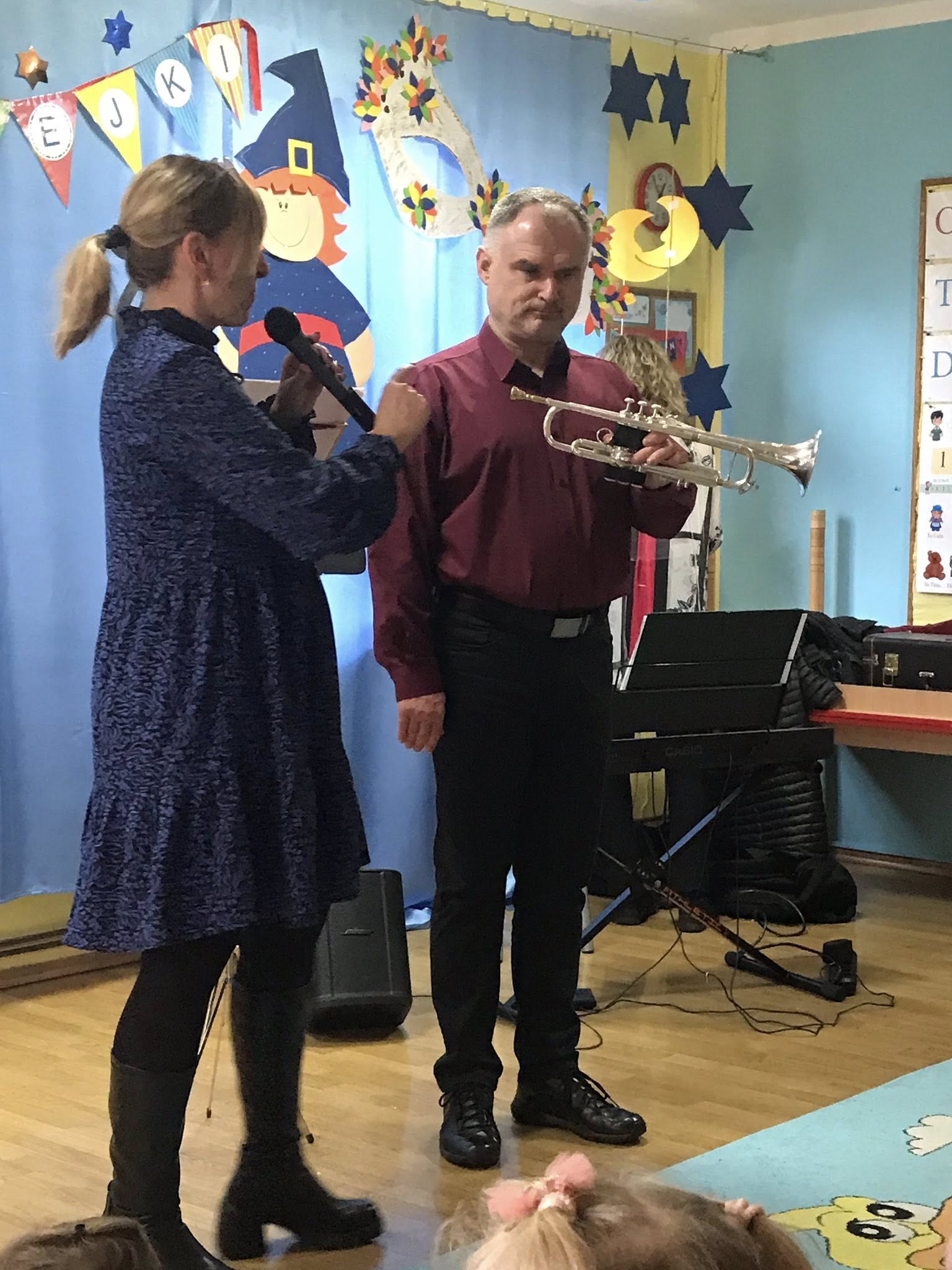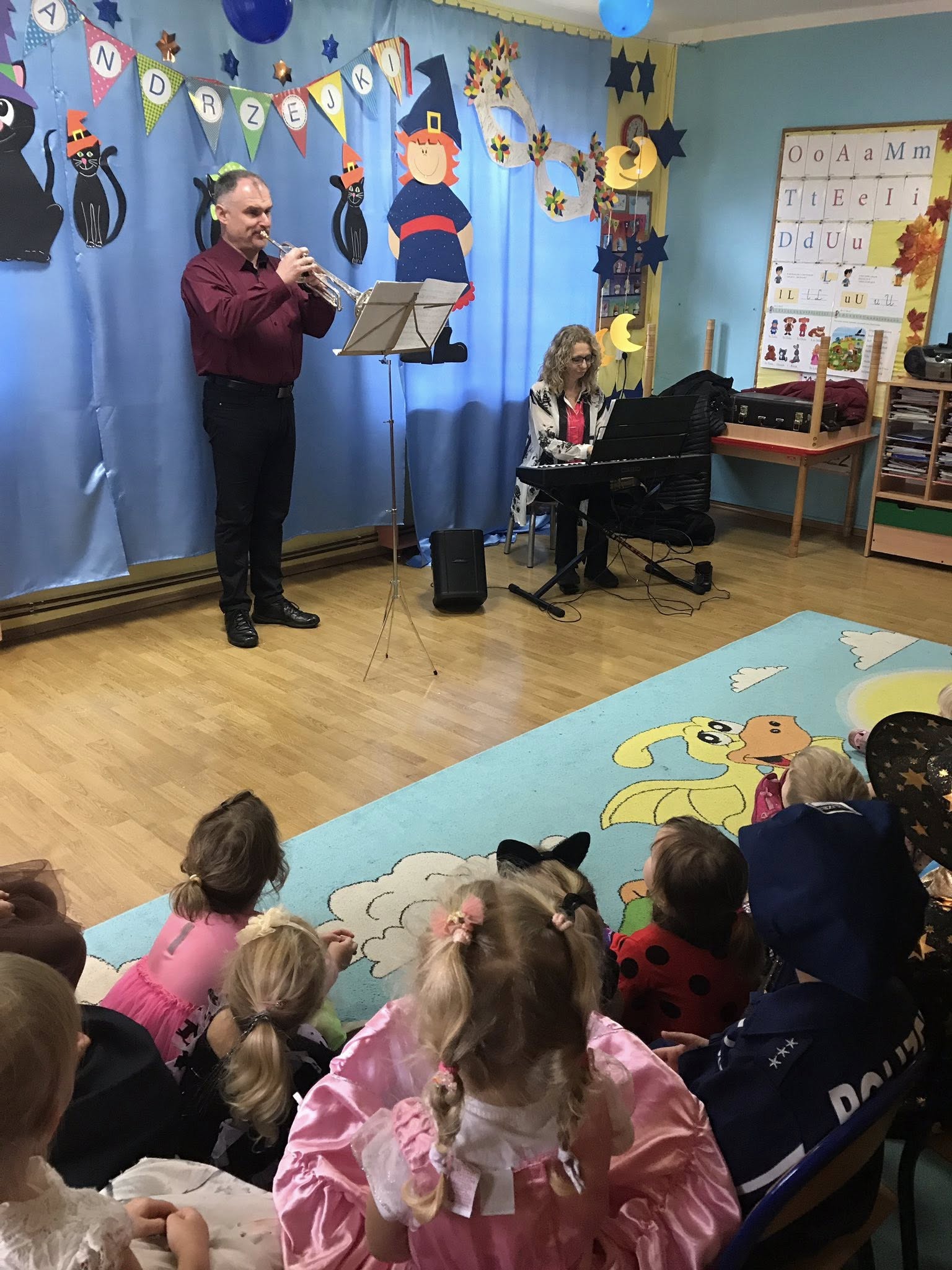 W roku szkolnym 2025/2026 w naszym przedszkolu rozpoczął się cykl spotkań z muzykami z Filharmonii Świętokrzyskiej. Dzięki nim przedszkolaki uczą się obcować z muzyką , słuchają i bawią się przy dźwiękach instrumentów muzycznych. Witamy w nowym roku przedszkolnym muzyków z Filharmonii Świętokrzyskiej.
